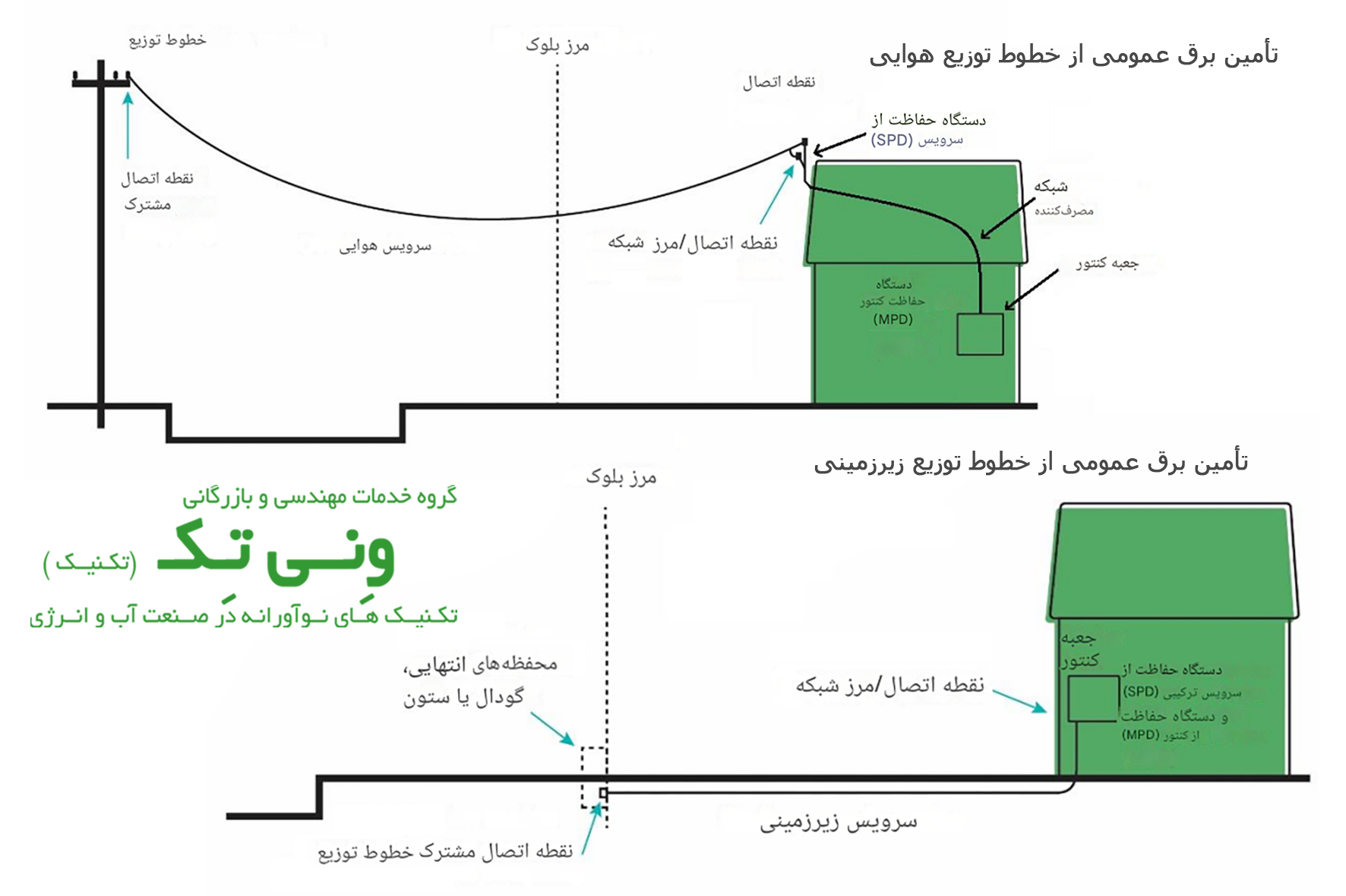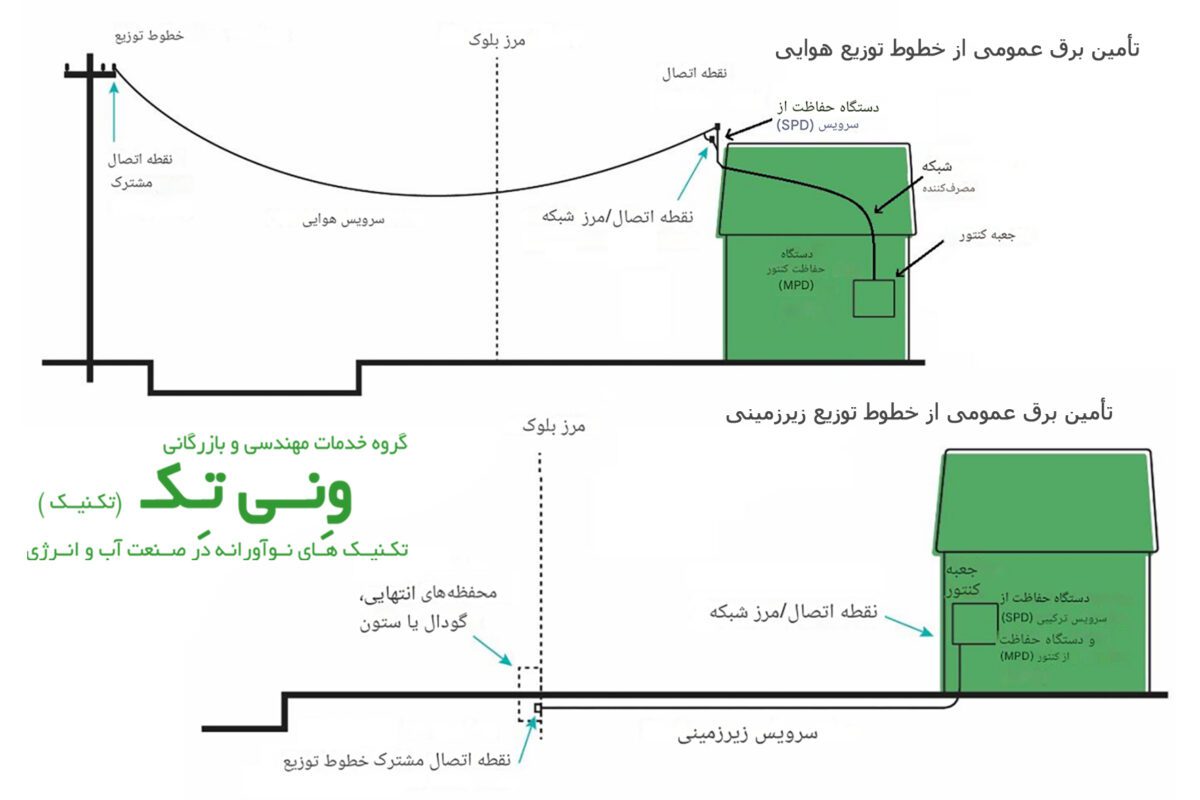 محل ورود شبکه، کنتور، حفاظت اصلی و خروجی به داخل ملک.