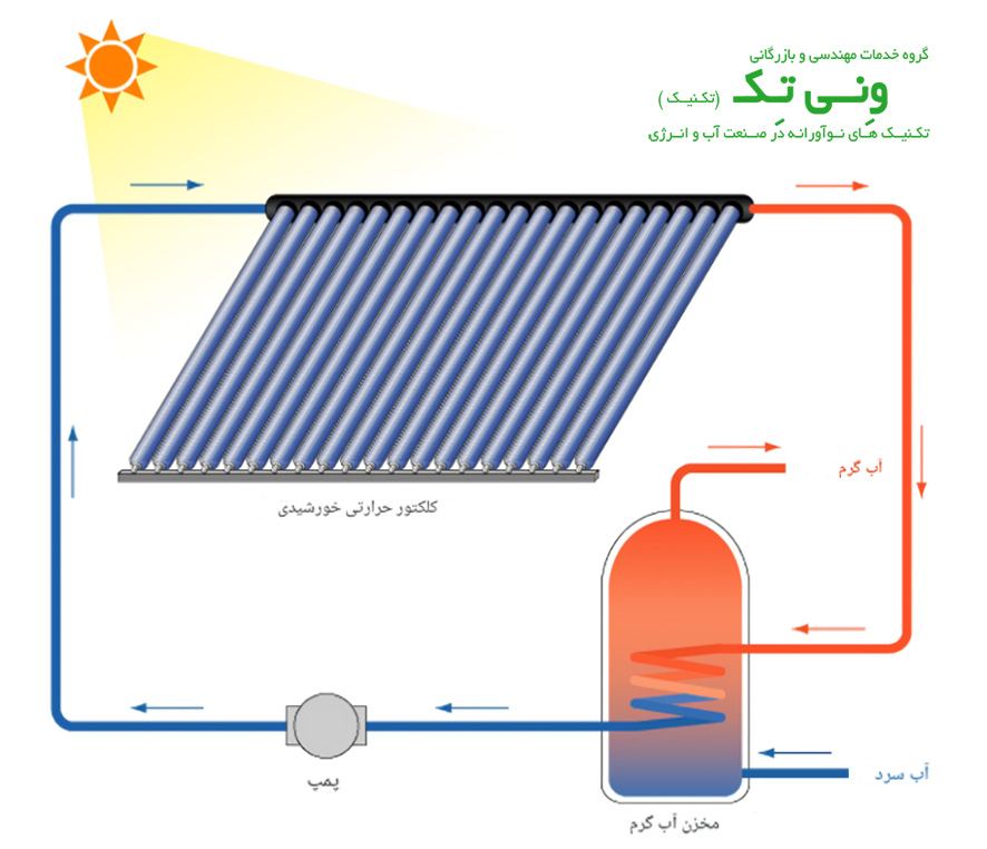 • سیستم‌های گردش مستقیم (Direct Circulation): در این سیستم‌ها، پمپ‌ها آب مصرفی خانگی را مستقیماً از طریق جمع‌کننده‌ها به گردش درآورده و به داخل خانه منتقل می‌کنند. این سیستم‌ها برای اقلیم‌هایی که به‌ندرت دچار یخبندان می‌شوند، مناسب هستند.