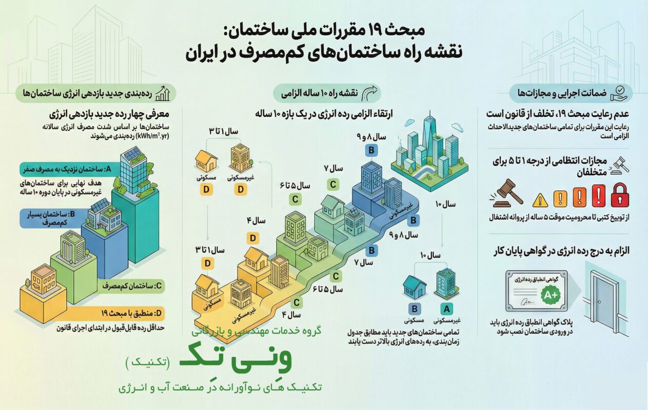 افزایش سرسام‌آور هزینه‌های انرژی و تشدید نگرانی‌های زیست‌محیطی، توجه همگان را به این موضوع جلب کرده است. در این میان، یک تغییر بنیادین و بی‌صدا در حال وقوع است که آینده صنعت ساختمان ایران را دگرگون خواهد کرد. «مبحث ۱۹ جدید مقررات ملی ساختمان» دیگر مجموعه‌ای از توصیه‌های فنی نیست؛ بلکه یک راه‌حل جامع و یک نقشه راه دقیق برای نحوه طراحی، ساخت و بهره‌برداری از ساختمان‌هاست که زندگی همه ما را تحت تأثیر قرار خواهد داد. این مقررات، پاسخی به چالش‌های امروز و گامی بلند به سوی فردایی پایدارتر است.